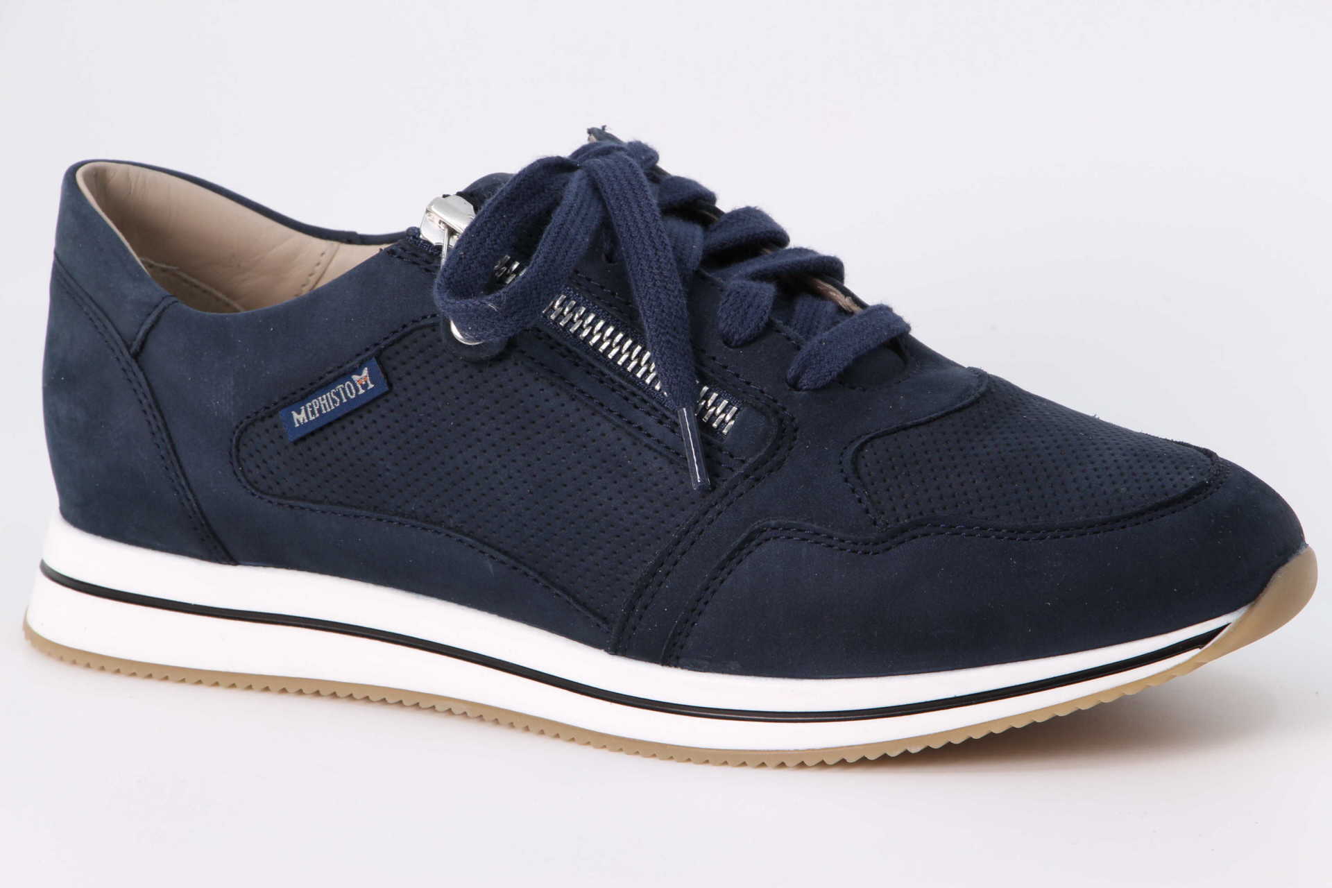 Dieser ausgesprochen leichte, sportliche MEPHISTO Damenschuh im Sneaker Look bietet einen besonderen Tragekomfort. Das weiche Kalbsleder dieses Damensneakers ist leicht perforiert, auch in dieser Saison wieder ein gefragtes Detail. Der sommerliche Schuh passt sich geschmeidig dem Fuss an und garantiert dadurch eine perfekte Passform. Das auswechselbare Fussbett mit integrierter SOFT-AIR TECHNOLOGIE reduziert harte Auftrittsstösse auf ein absolutes Minimum, garantiert moosweiches und ermüdungsfreies Gehen und sorgt für ein gesundes Fussklima. Die Laufsohle aus 100% Naturkautschuk ist zudem mit einem Schockabsorber ausgestattet und reduziert dadurch harte Auftrittsstösse auf ein absolutes Minimum.