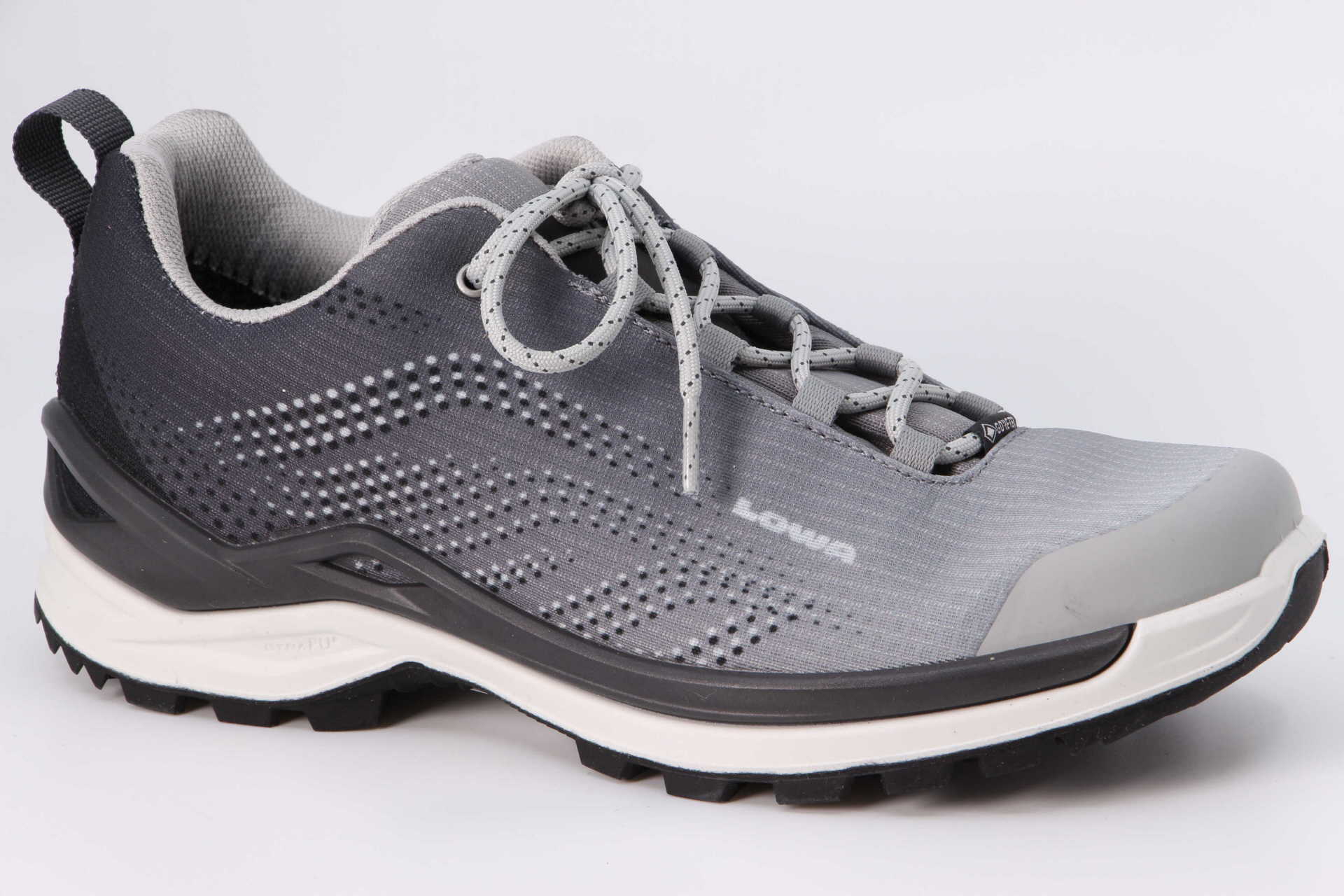 Sportlich, dynamisch und agil – auf weniger Attribute liesse sich der ZIRROX GTX LO Ws kaum reduzieren. Wozu auch, der leichte Halbschuh bringt neben hervorragendem Tragekomfort alle funktionalen Eigenschaften mit, die es für ein rundum perfektes Outdoor-Erlebnis wirklich braucht. So bleiben Outdoorsportlerinnen dank geringem Gewicht, leichtgängiger Schnürung und robustem Textilmaterial bei jedem Wetter in Bewegung. Dafür sorgen allein die wasserdichte GORE-TEX-Membran und die LOWA®-MULTI-TRAC®-Sohle mit LOWA DynaPU®.
